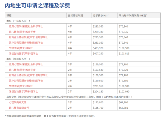 *详情请参阅东华学院网页:www.twc.edu.hk/sc/Programmes/