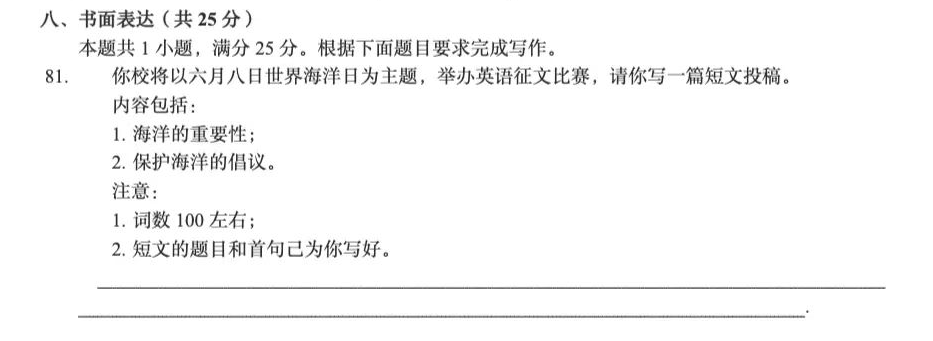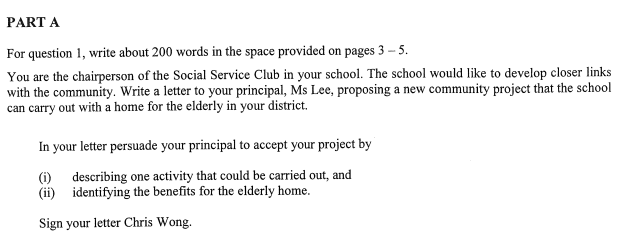 Part B:选答题。考生需写一篇400字的小作文,从8道题中选1题作答就可以。考生可按自己的水平和熟悉的领域来选题。主要题材包括记叙文、说明文、议论文、信件、演讲词和建议信等等。