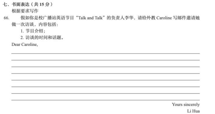 Part A:必答题。考生需根据题目写一篇200字左右的短文,内容相对简单,题材多样:书信、故事、简报或者文章,比如2017年考的就是书信写作。