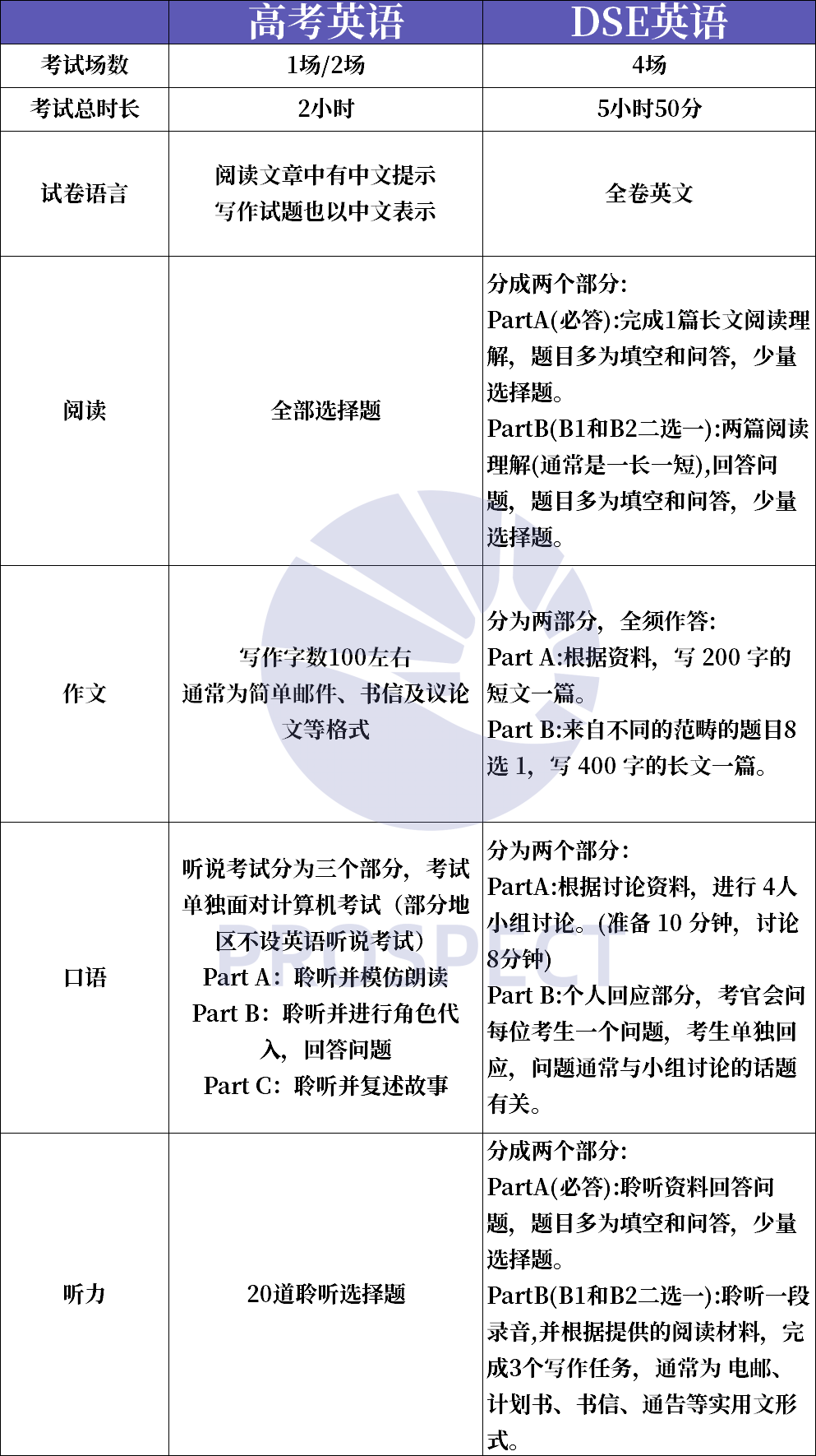 最后附上DSE英语与内地高考考点的详细对比图: