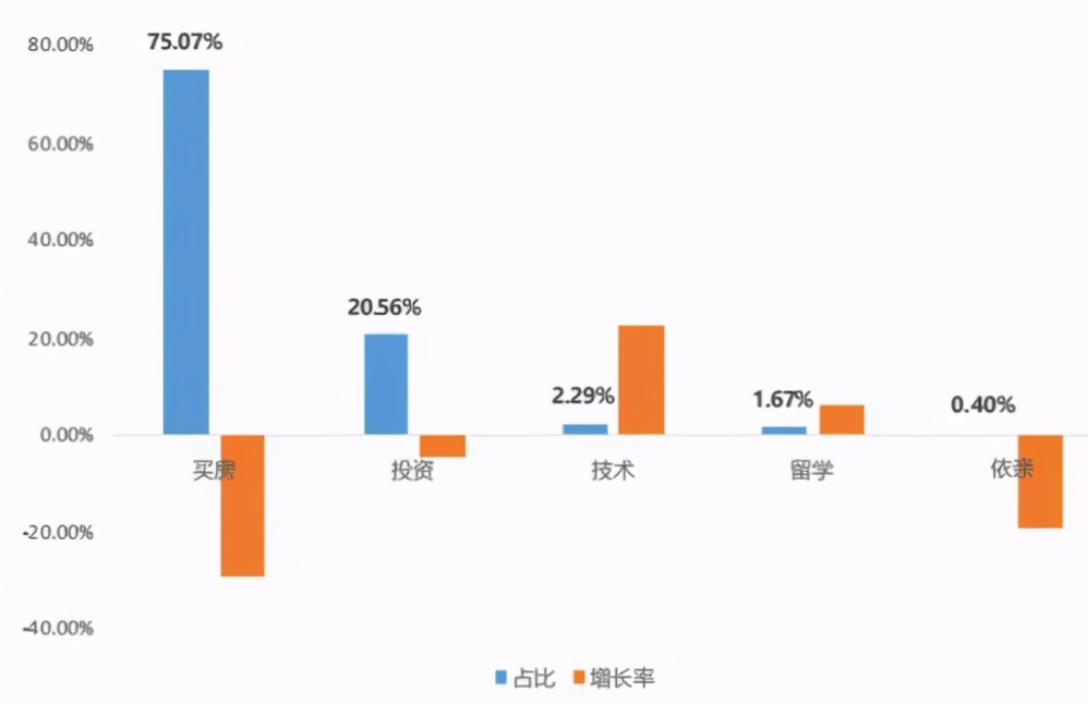 根据联合国移民署(IOM)发布的《世界移民报告2022》中显示,近些年在移民海外的人士中,购房移民的占比高达75.07%,稳居第一;基金投资则以20.56%的占比位居第二。