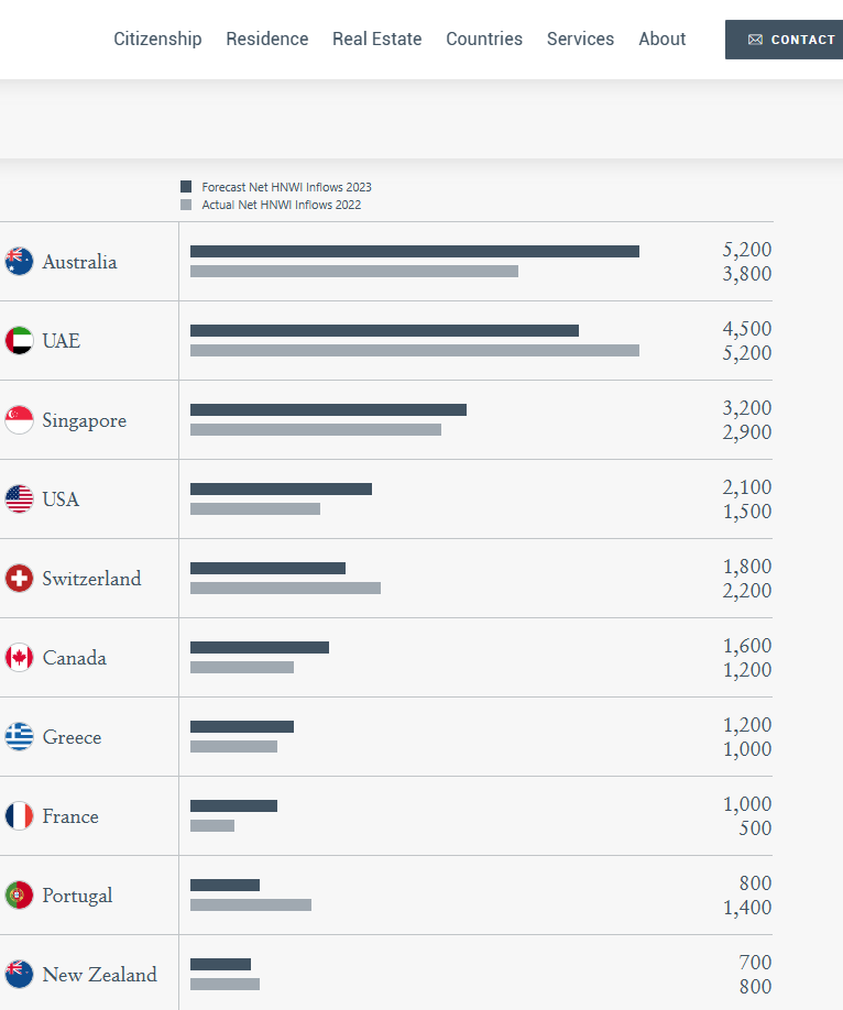 根据报告中的数据显示,2022年选择澳大利亚的高净值人士有3800人;2023年预计还会吸引5200位;其受欢迎程度不亚于美国、新加坡,以及加拿大。