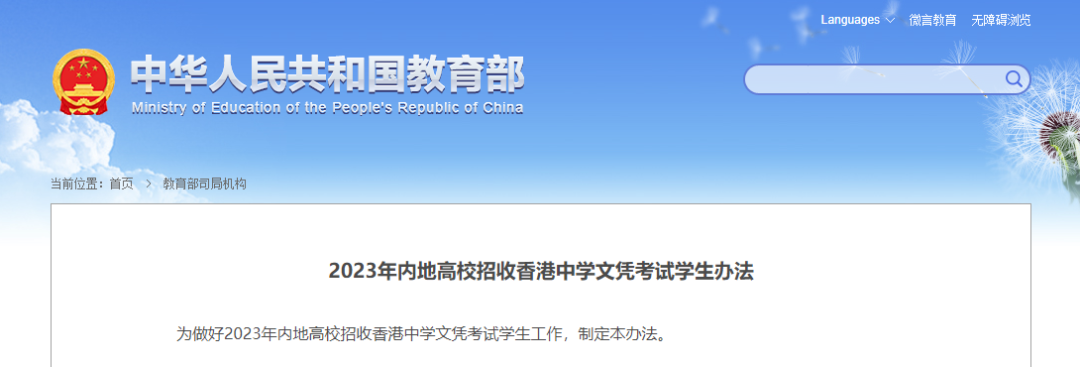 近日,教育部更新了《2023年招收香港中学文凭考试学生内地高校名单》和《2023年内地高校招收香港中学文凭考试学生办法》。