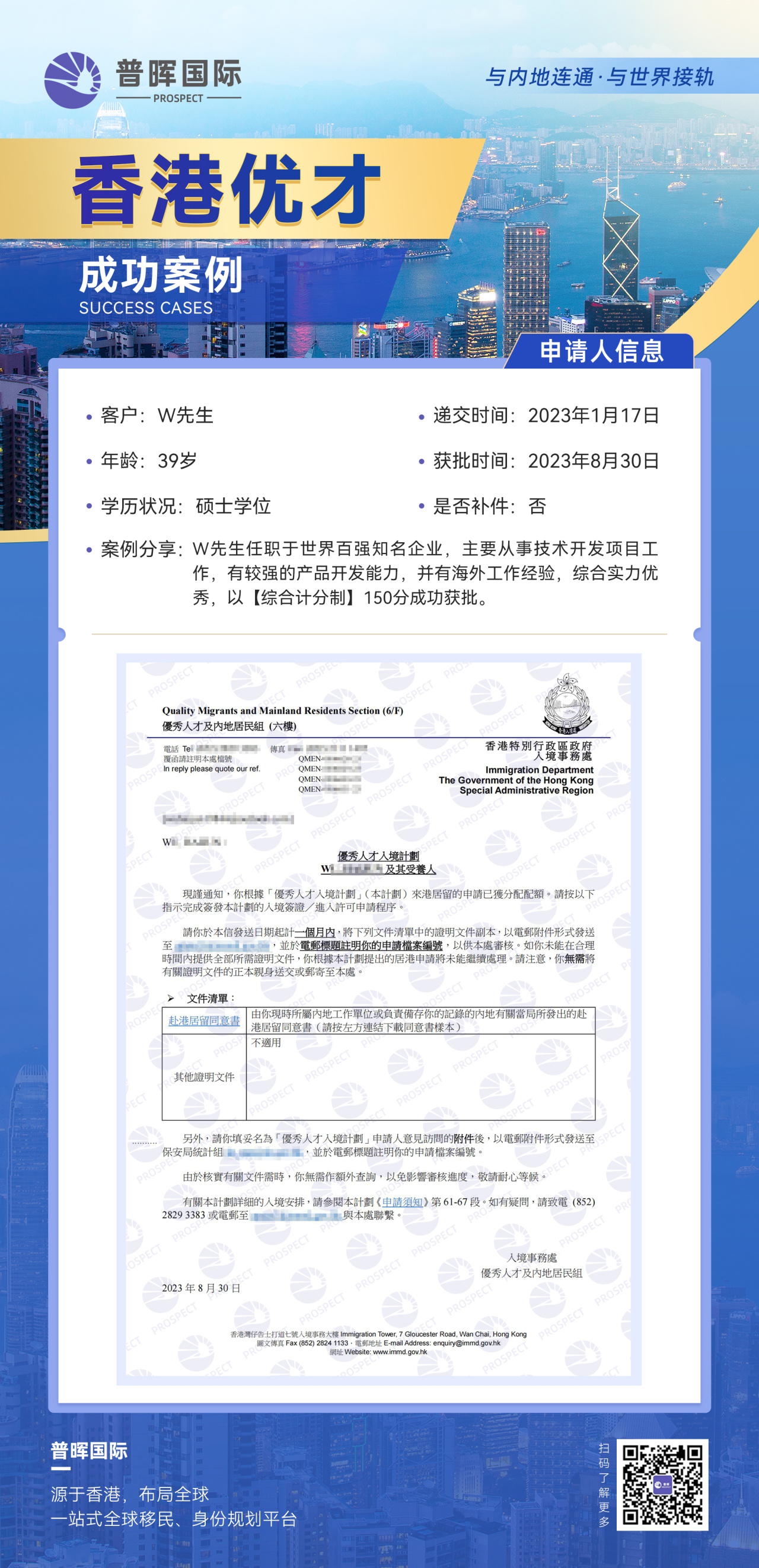 所有申请材料整理完毕后,于2023年1月17日递交香港入境处,期间未有补件。