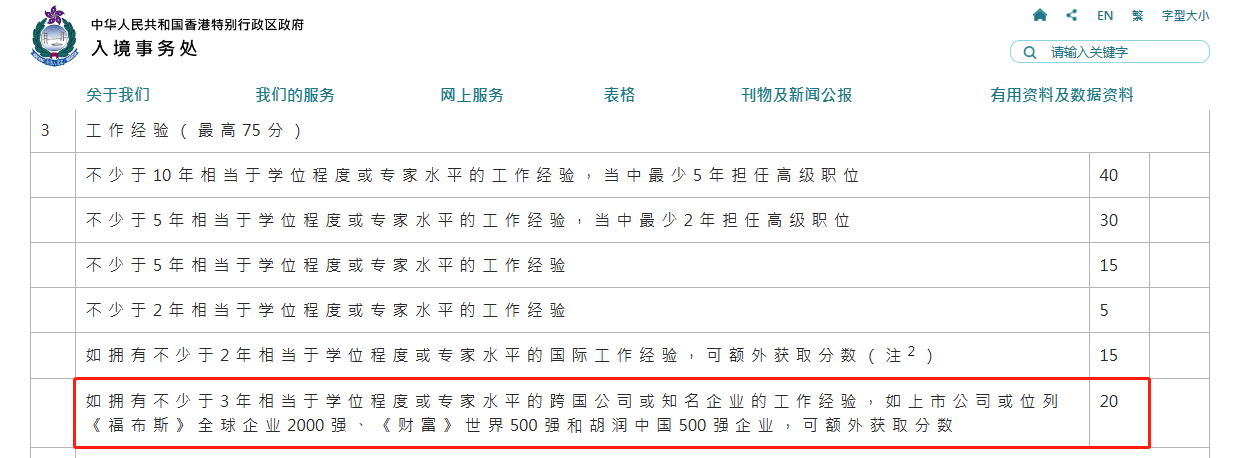 而新增的名企加分项,是香港今年较看重的一点。此项目的加分,直接让225分的满分制度上升至245分。