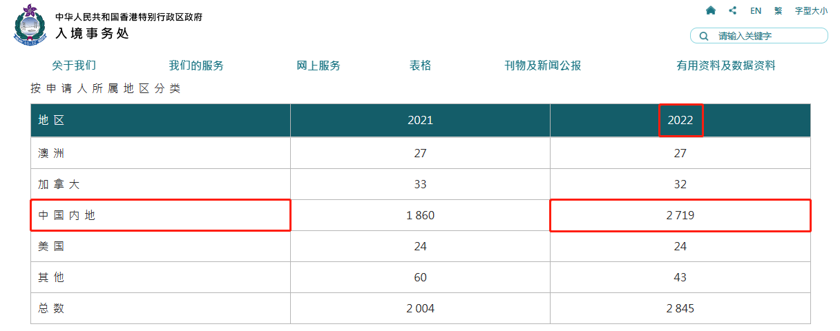 据统计,入境处共收到16396宗申请,较2021年的5365宗申请相比,数量增幅高达206%。