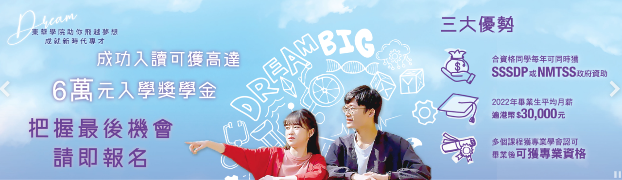 东华学院是全港首间及唯一一间提供专业认可的医疗学位课程的自资专上院校。同时也是全港首间开办社商企业持续发展学位课程的自资专上院校。