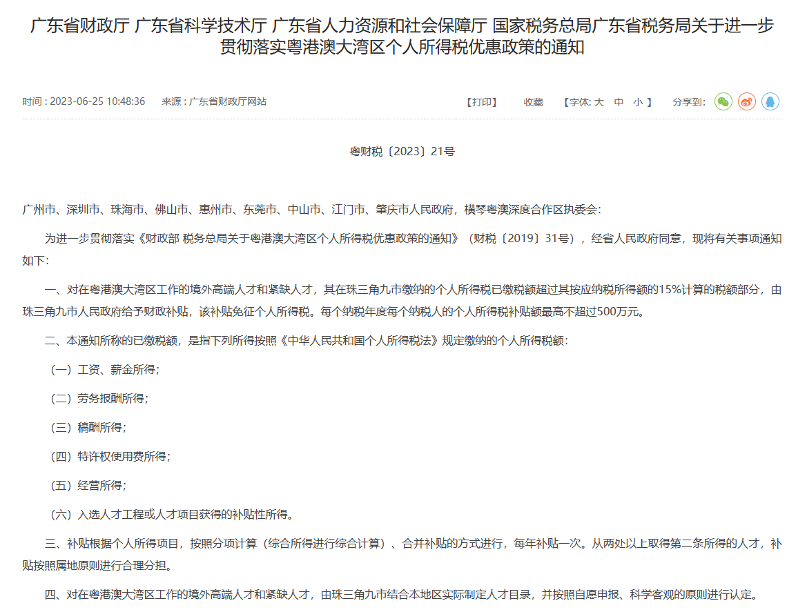 8月18日,国家税务总局发出《关于延续实施粤港澳大湾区个人所得税优惠政策的通知》,宣布大湾区有关个人所得税优惠政策延续实施至2027年12月31日。