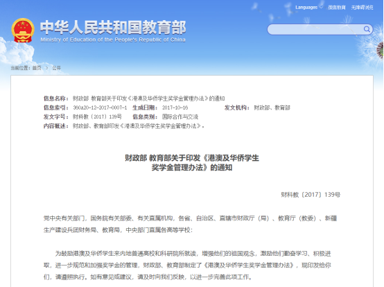 金额数据源于《港澳及华侨生奖学金管理办法》