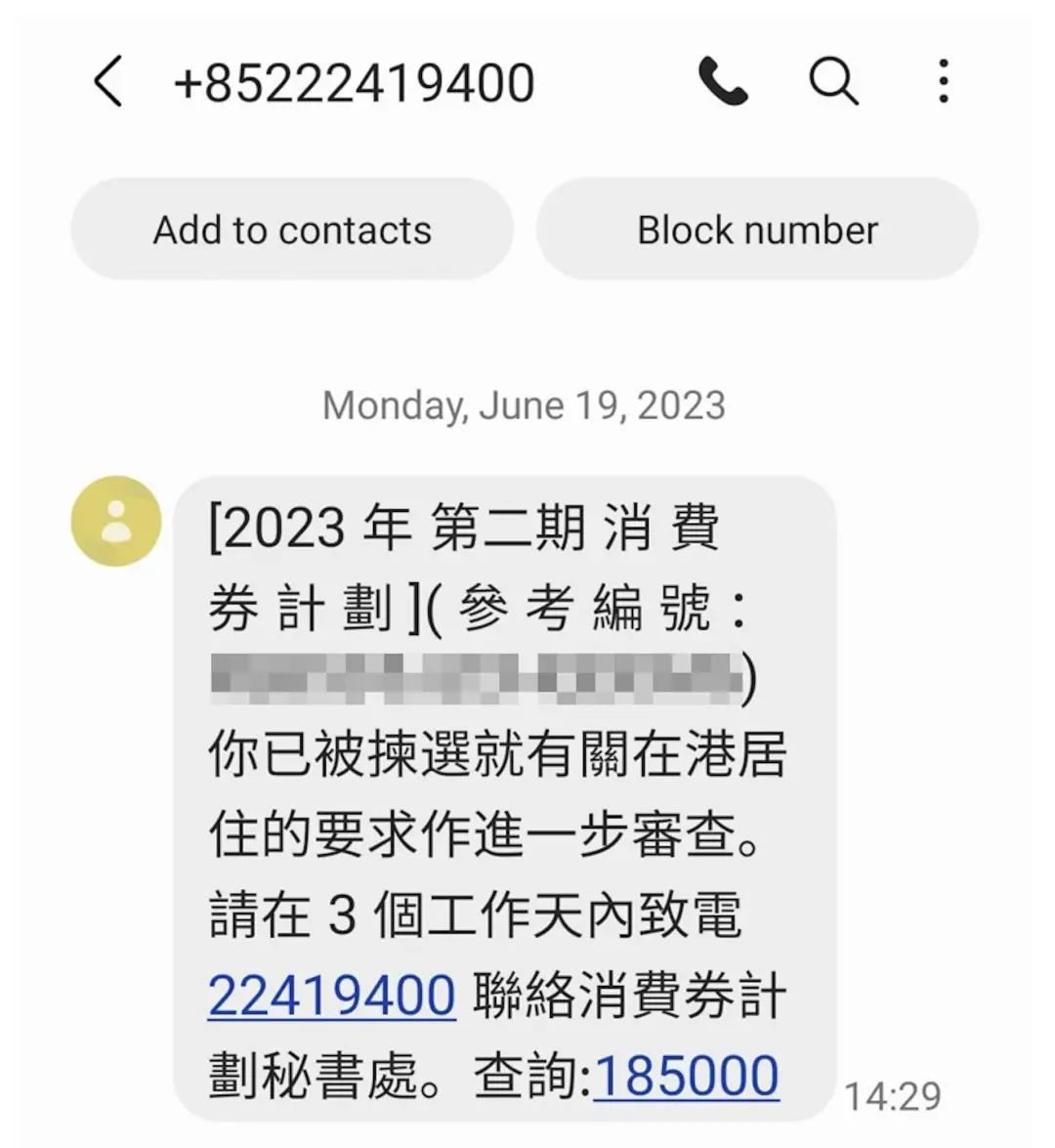 符合领取资格的人士,需要按照要求在3天内致电相关办事处。如果最终没有回应,会再次以短信形式通知市民失去领取资格。