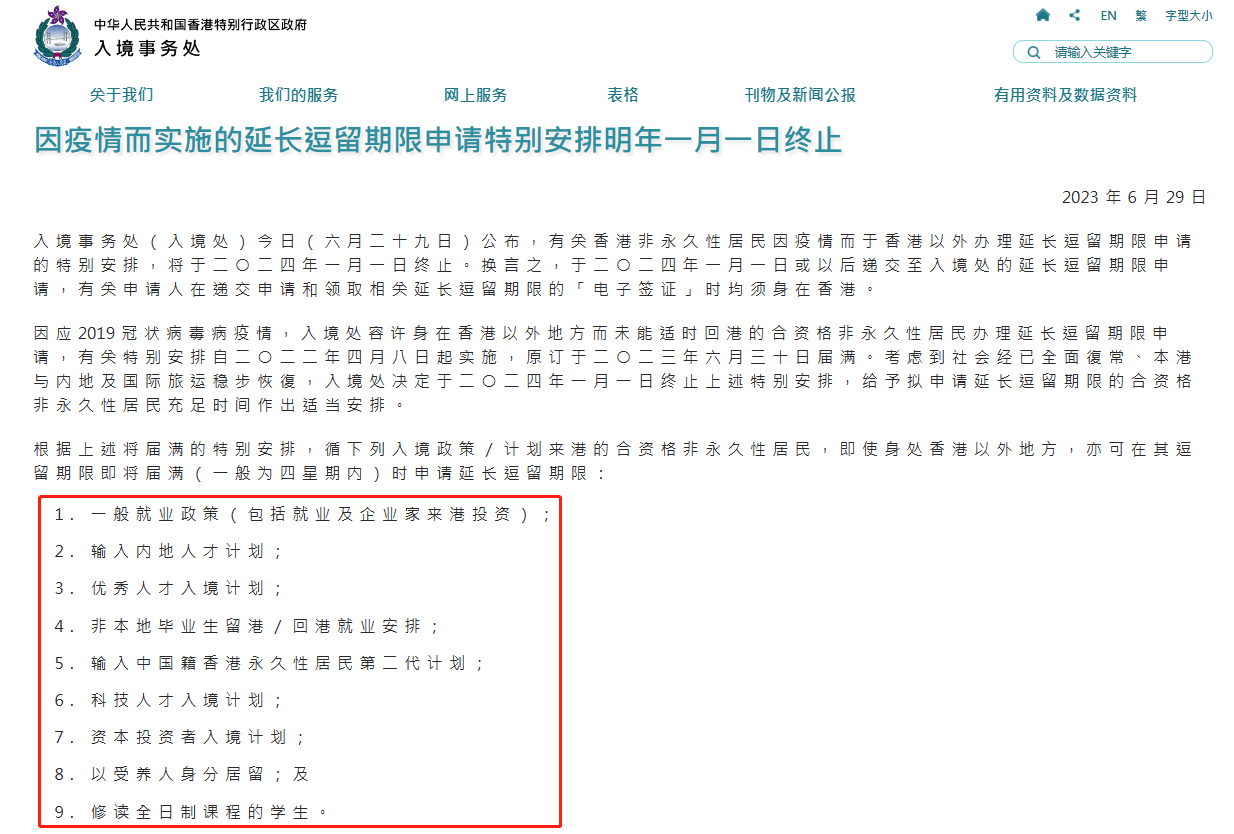 但在6月29日,香港入境处公布,关于这项特别安排将在2024年1月1日终止。