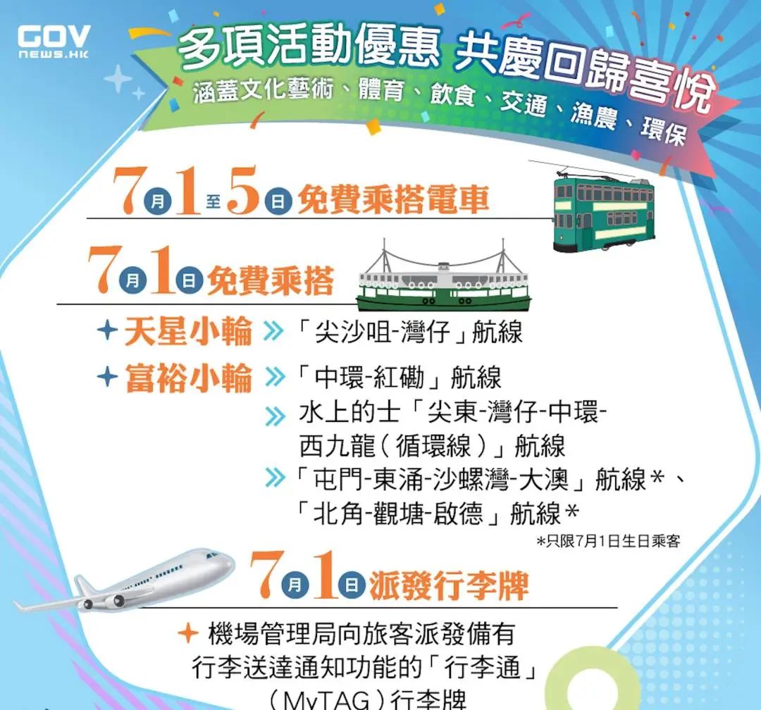 *7月1日生日的乘客,可免费搭乘【北角-观塘-启德】、【屯门-东涌-沙螺湾-大澳】的渡轮航线