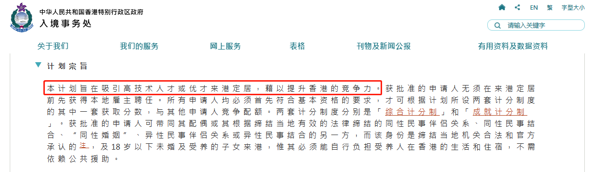 目的是吸引高技术人才或优才赴港定居,借以提升香港在全球市场的竞争力。