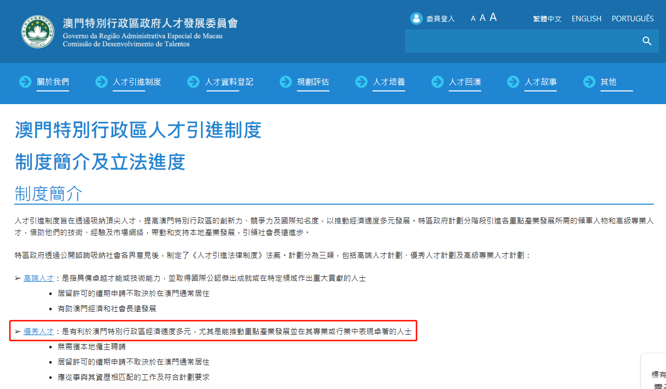 而澳门则是在2023年5月18日表决通过了人才引进的相关法案,有三类人才引进计划可以申请。
