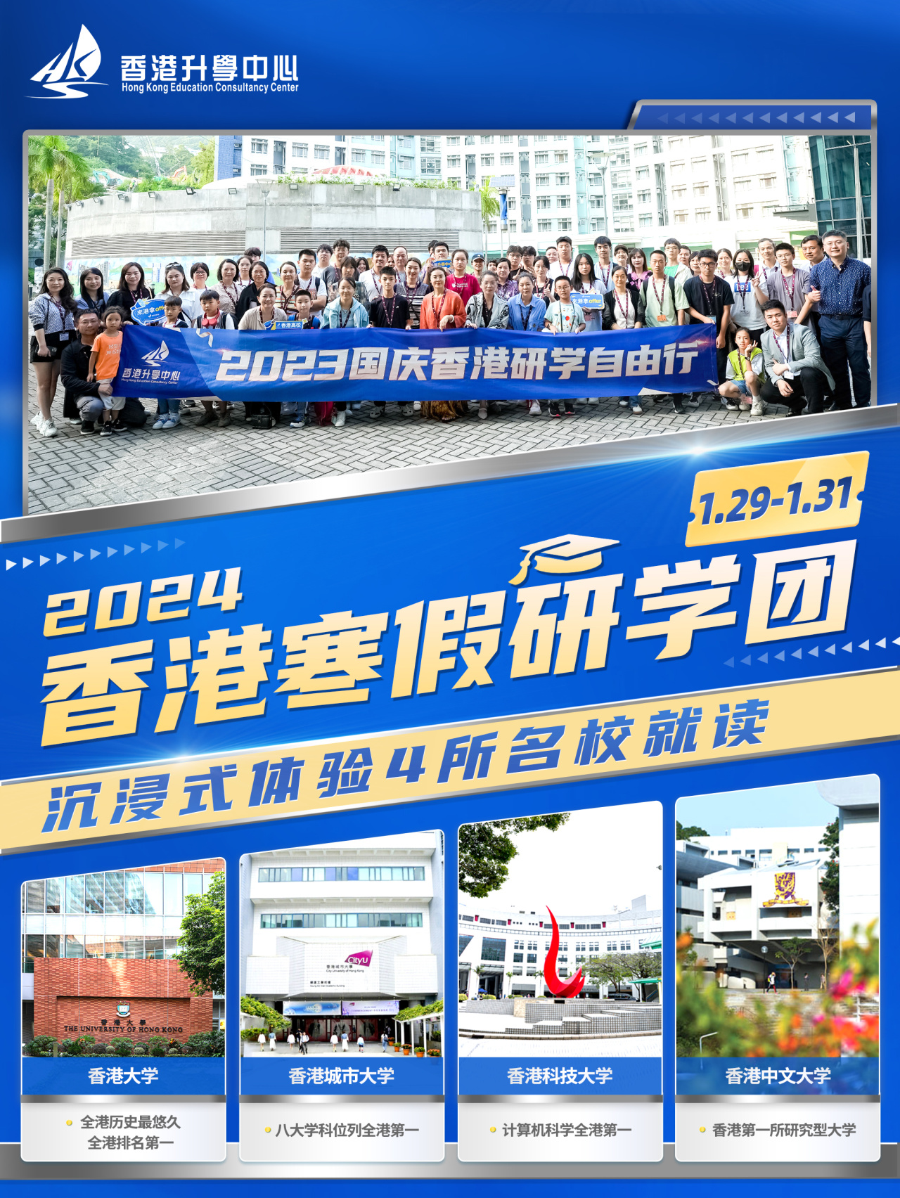 香港寒假研学团,旨在为初一至高三学子提供三天两夜(1月29日-1月31日)的名校研学之旅,学员将前往香港四所百强名校,通过参访、上课、互动、体验等方式近距离感受港校浓郁的学术氛围,从而启发他们内心的名校梦想,规划更加国际化的升学路径。