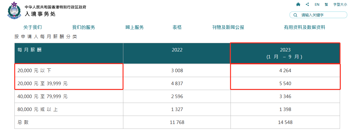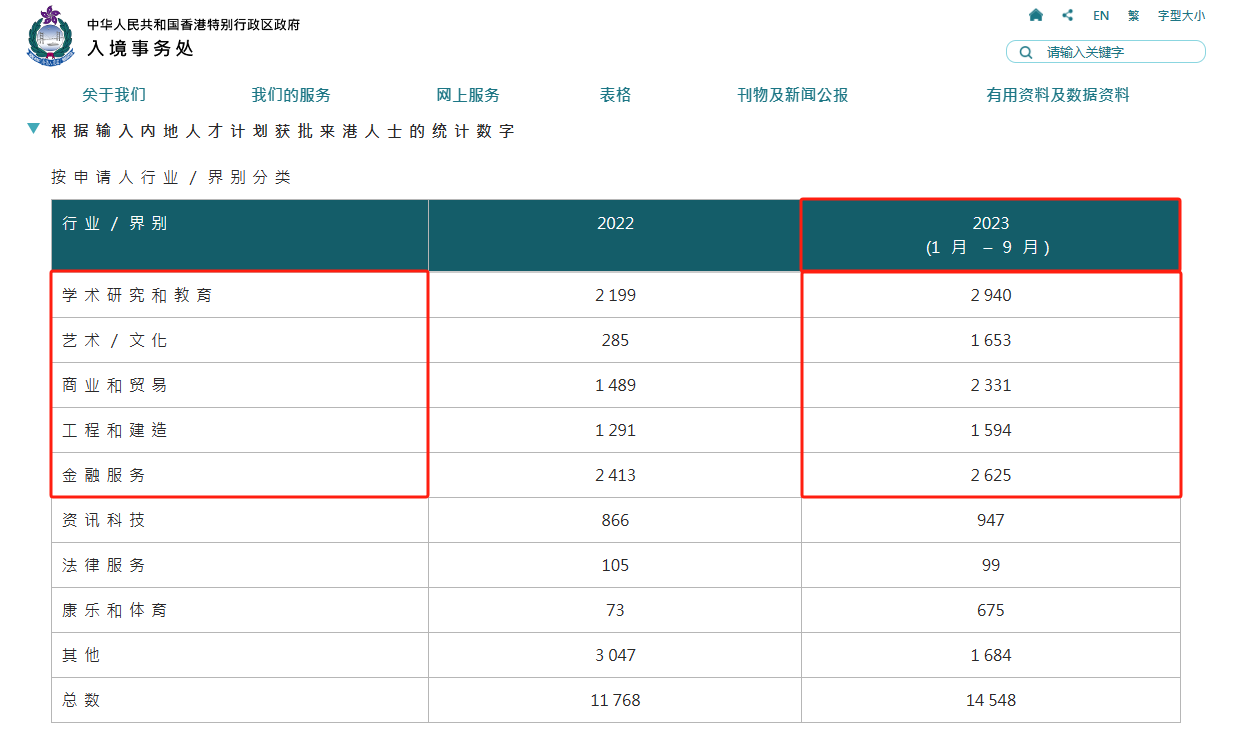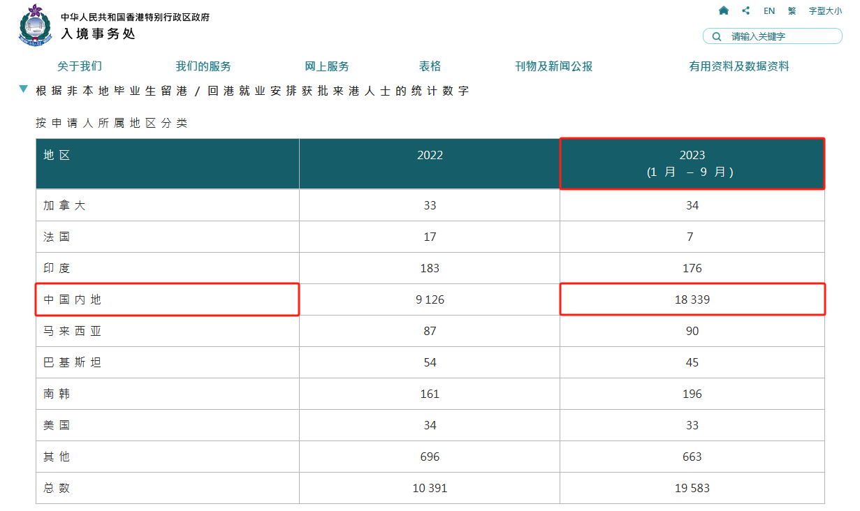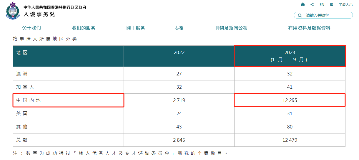 11月21日,香港入境处公布了2023年1~9月各项计划的获批详细数据,其中包括《优秀人才入境计划》、《输入内地人才计划》,以及《非本地毕业生留港/回港就业安排》。