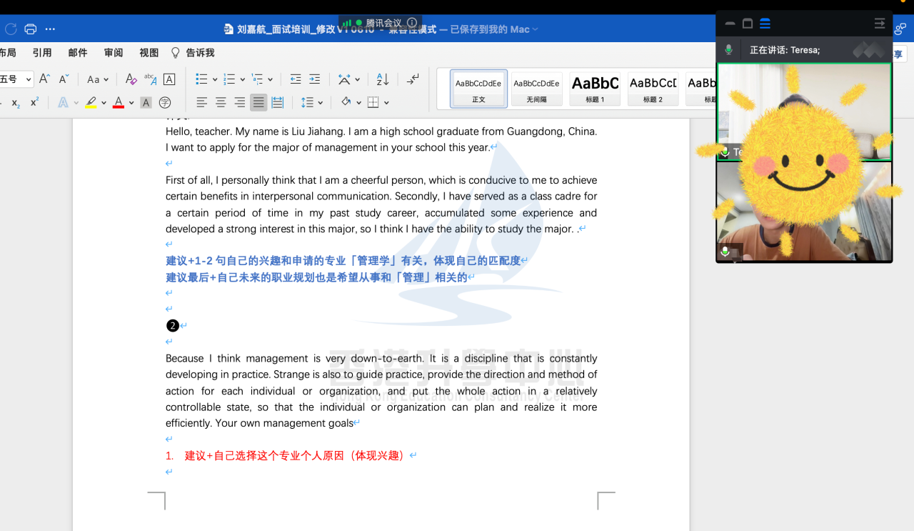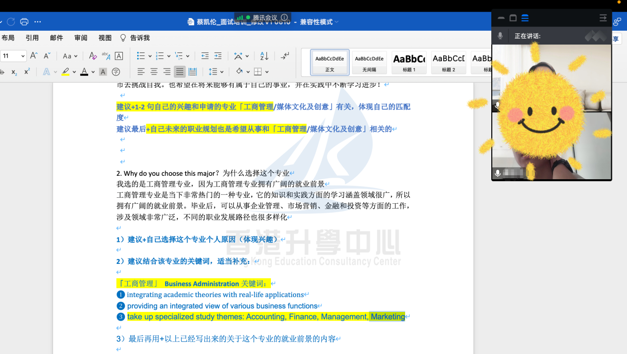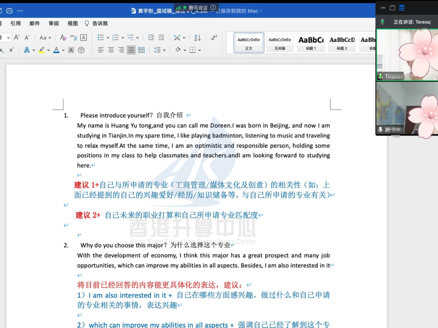 面试前,中心老师根据学员的目标院校要求,为学员规划一对一面试培训,反复优化、润色面试答案,帮助学员掌握面试要领和高级表达技巧。