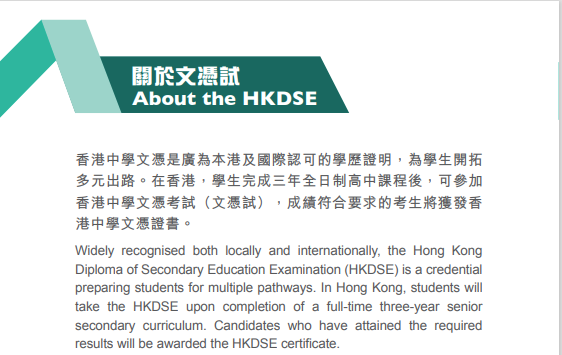 作为唯一一个可以用简体中文作答的国际性考试,DSE的成绩受全球认可,考生可通过DSE成绩申请香港、内地及海外高校。