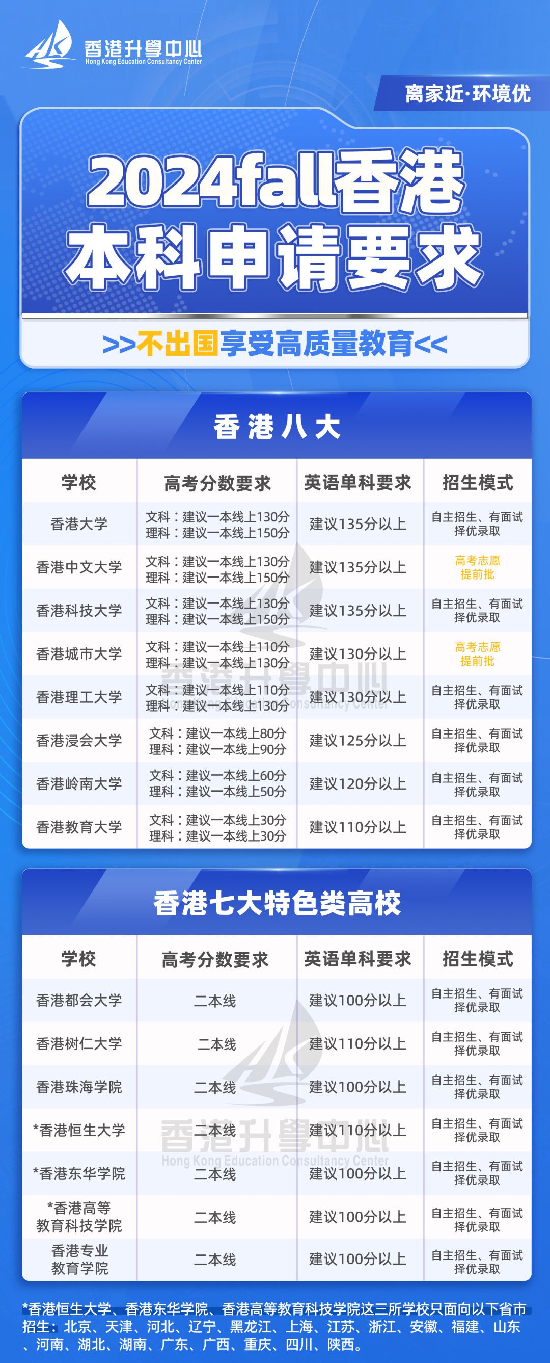 这里不得不提一下的是,香港院校申请要求一般为“合格的高考成绩+面试通过”,在高考成绩未出来之前,学生可以先参加港校的自主招生面试,面试通过就会收到港校发出的预录取通知书。