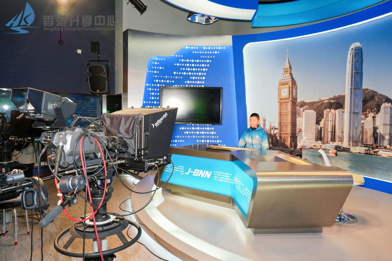 作为亚洲顶尖传媒学院,港浸大拥有完善齐全和标准化的教学设施与训练室。本次研学,中心特地为各位学员安排了浸大的特色直播体验。学员们依序坐上直播间,自信从容地面对镜头和灯光,亲身体验新闻主播的日常工作流程和学习他们的专业精神。