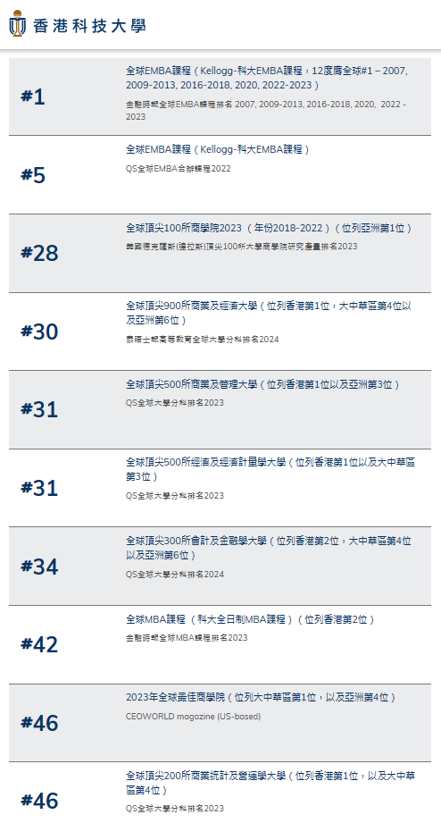 科大商学院不仅学术实力备受全球广泛肯定,也在多项国际排名中稳占前列位置。
