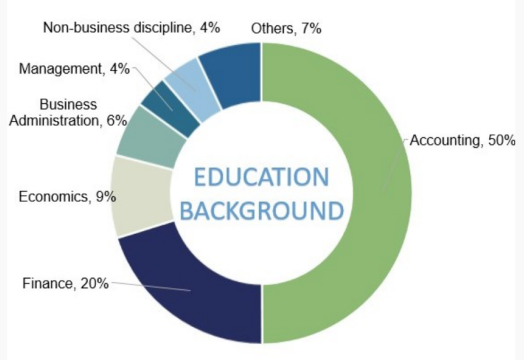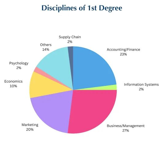 而商科背景的学生超过一半,分别是29%的会计学与金融学,20%的商业管理,以及15%的经济学。