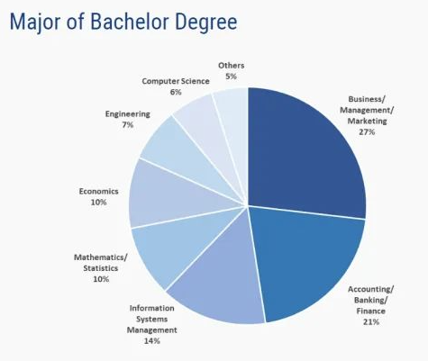 从本科学历看,被录取的大部分学生均为商科背景,只有11%的学生是非商科背景。