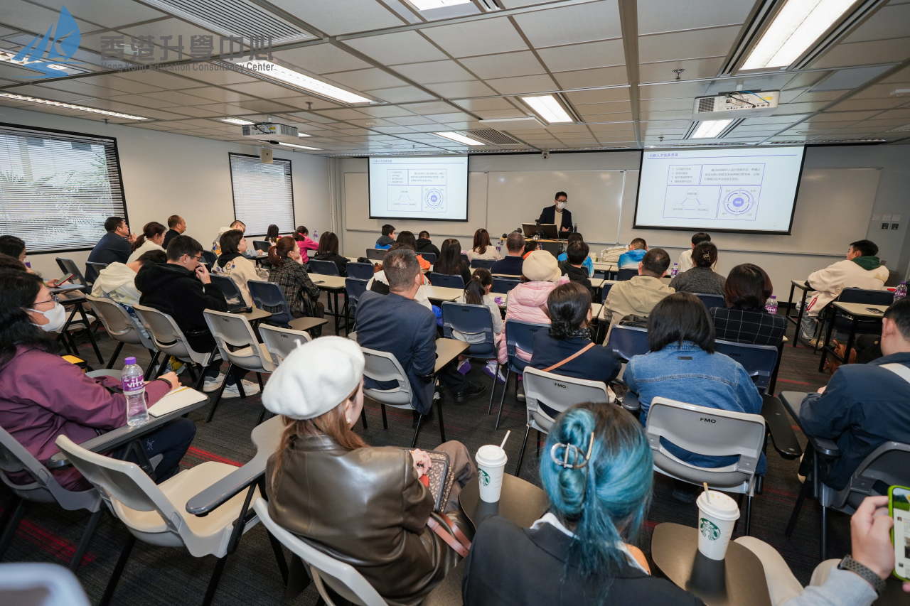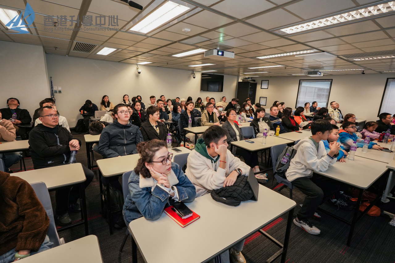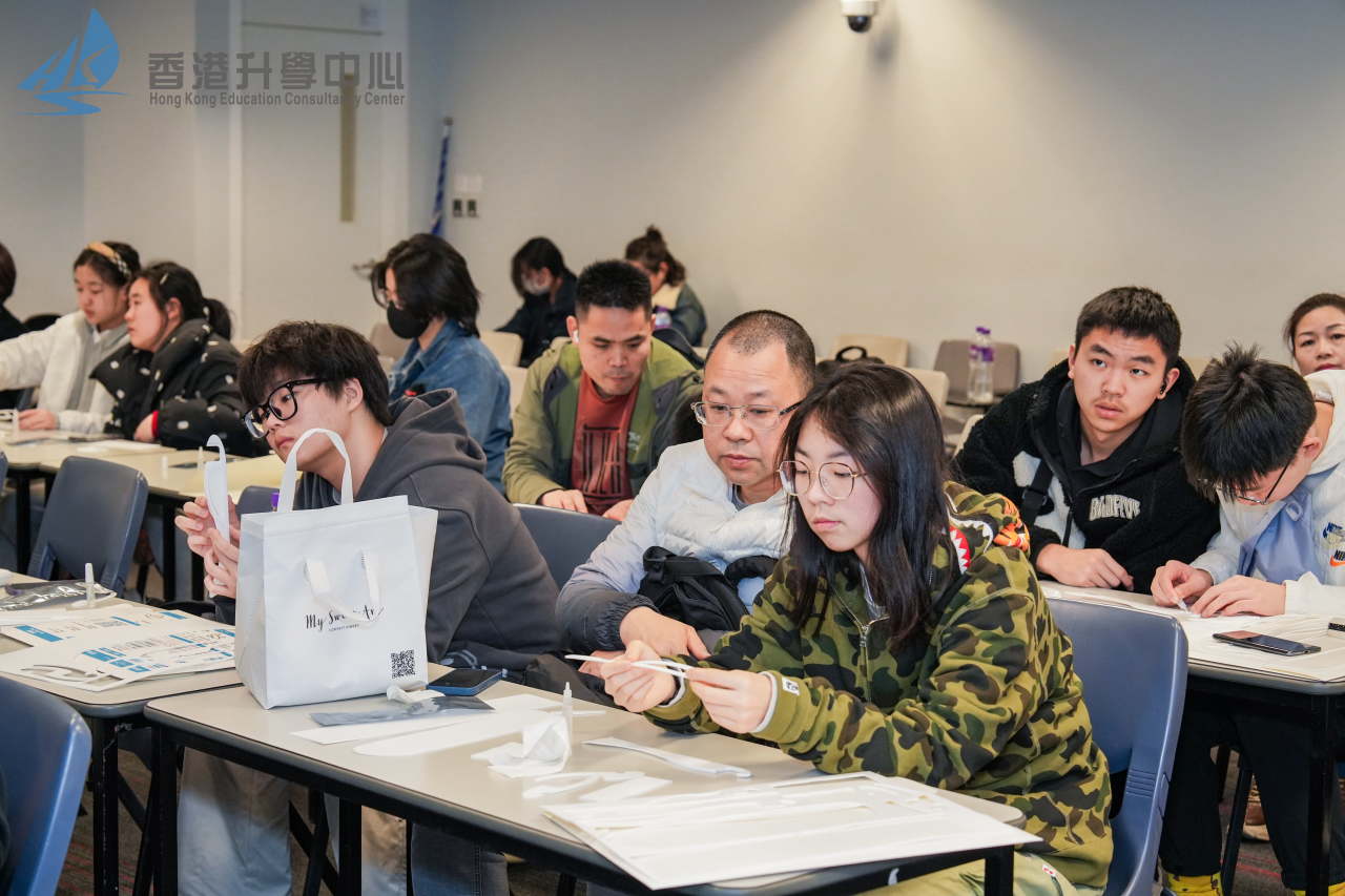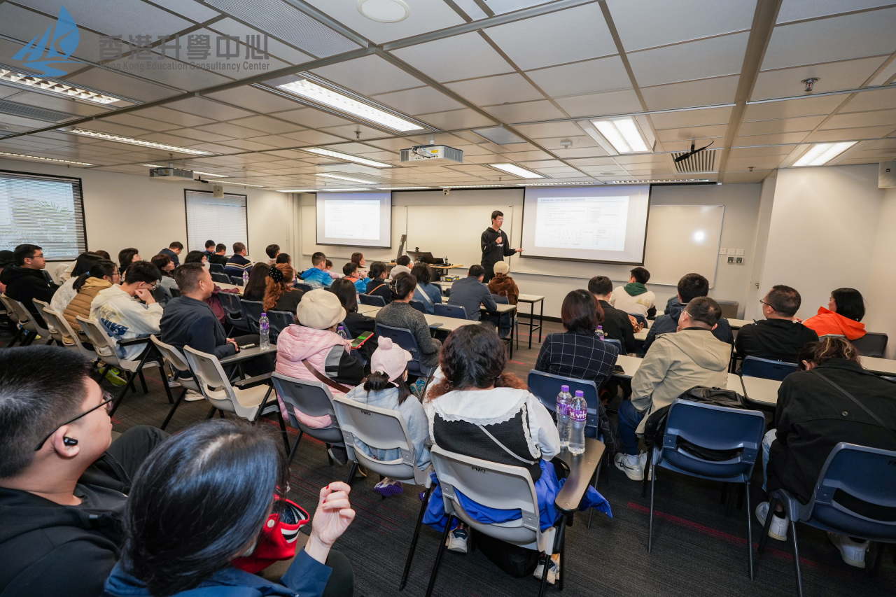 具有内地学习背景、现就读于港科的贺同学作为学生代表发言。他在台上与学弟学妹们分享了他从内地到香港留学以及在港科学习及生活的真实现状,并对现场家长、学员的疑问进行了详细解答,从自身经历帮助大家全面了解港科大。