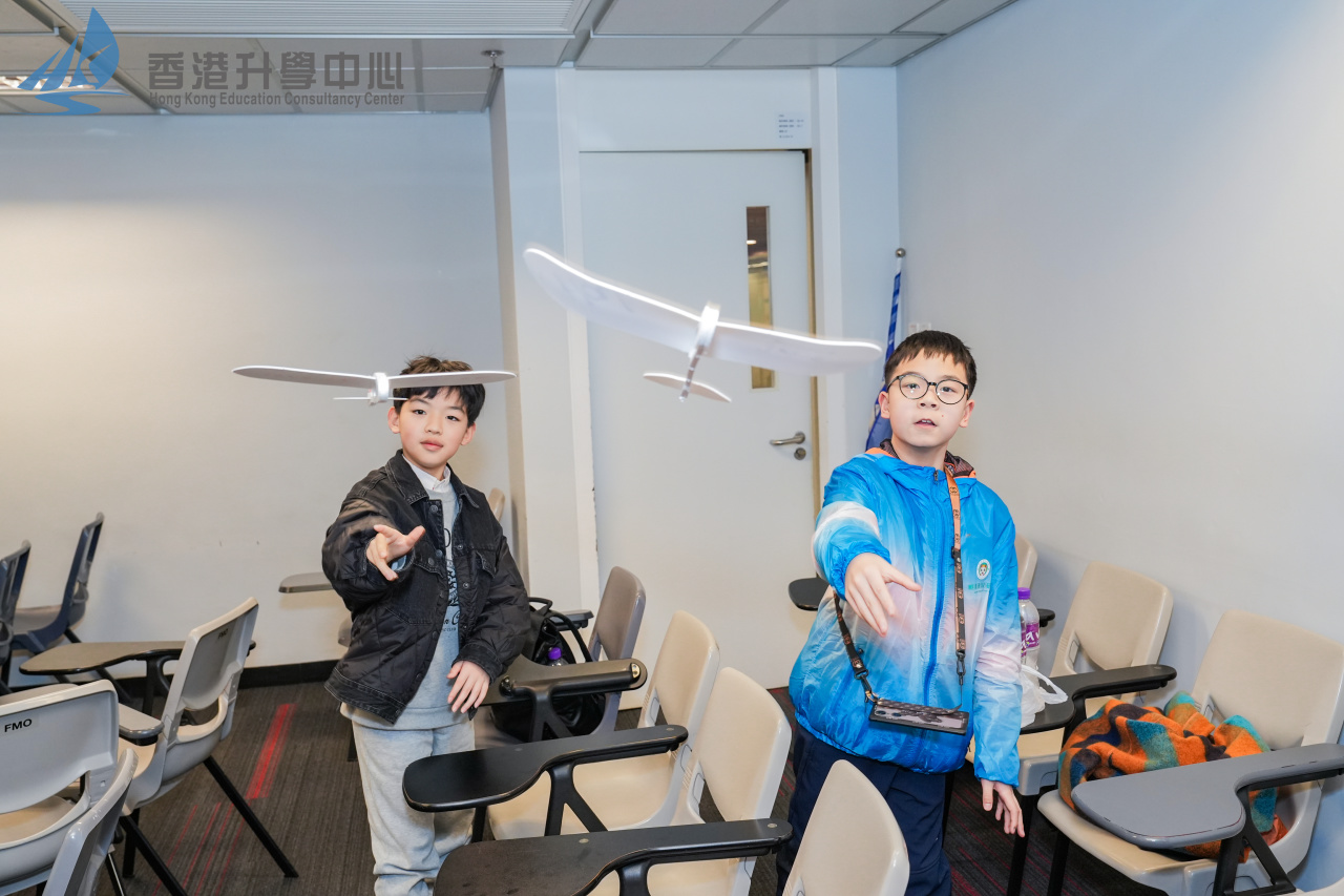 为此,香港升学中心特意为研学团安排了一堂名师体验课,邀请大咖教授施凌教授为学员讲解无人机、人工智能等前沿科技,如机翼与空气动力学原理、设计与制作滑翔机、滑翔机飞行测试等。