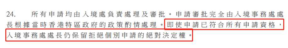 且不同个案在审批过程中也有一些细节差别,再加上有部分申请人士为了能够快速赴港,导致对政策与入境处的审核标准作出错误解读,还有的申请人士也会因为后期的沟通不畅、理解错误等原因而申请失败。