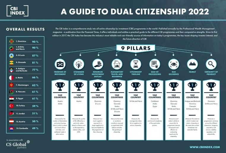 2022年,英国《金融时报》旗下《专业财富管理(PWM)》杂志发布的“全球最佳投资入籍”项目中,多米尼克、圣基茨、圣卢西亚、格林纳达等加勒比地区国家,均榜上有名,并占据了榜单前5。