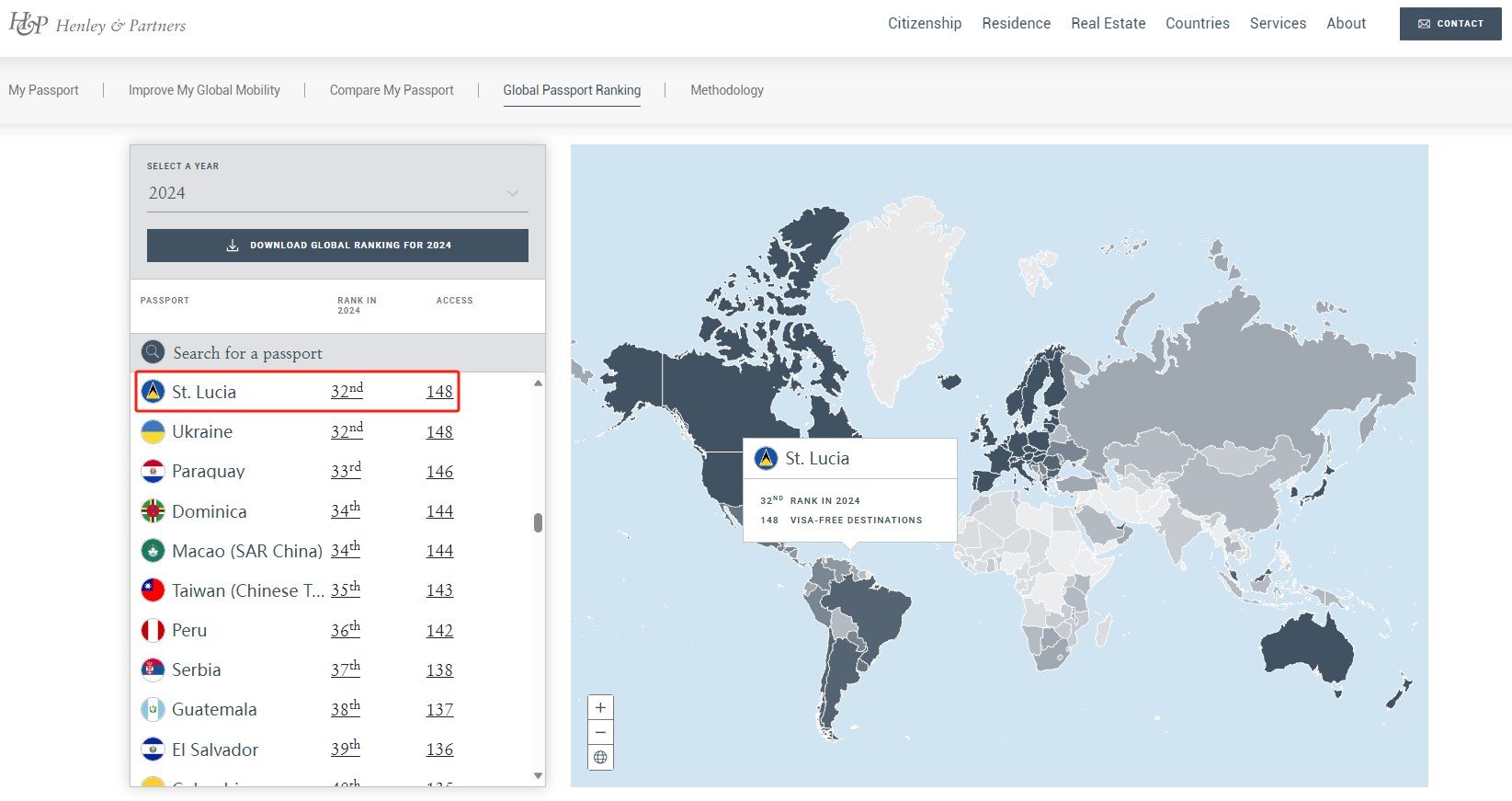 根据亨利护照指数最新排名,圣卢西亚护照位列全球第32,具有很高的国际认可度。