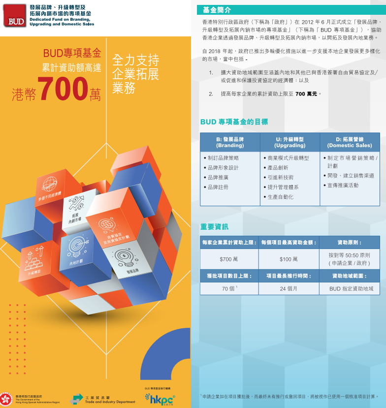 业务稳步发展后,亦可申请BUD补贴,最高可领700万港币。