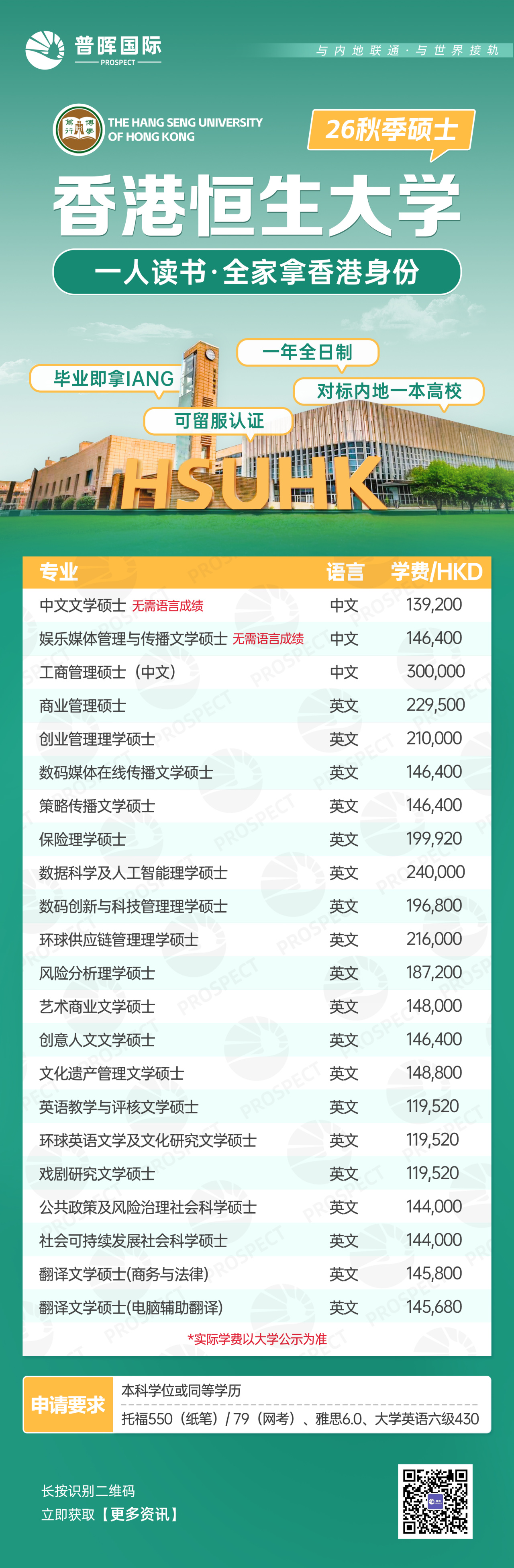 毕业后即可申请两年IANG签证,累计居住满7年即可申请转为香港永久居民。该项目无需高昂投资,是将个人深造、家庭规划与身份获取相结合的高性价比选择。