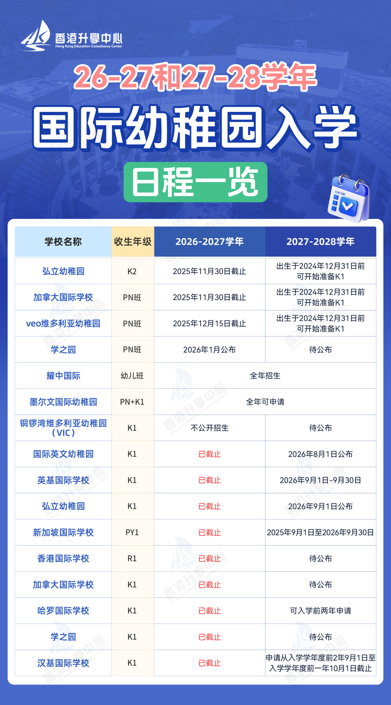 HKECC香港升学中心为大家整理了2026年还在春季插班名单里的幼稚园。有意向的家长请抓紧时间找HKECC香港升学中心规划上车哦!错过等一年,孩子的升学难度又会往上走一个台阶。