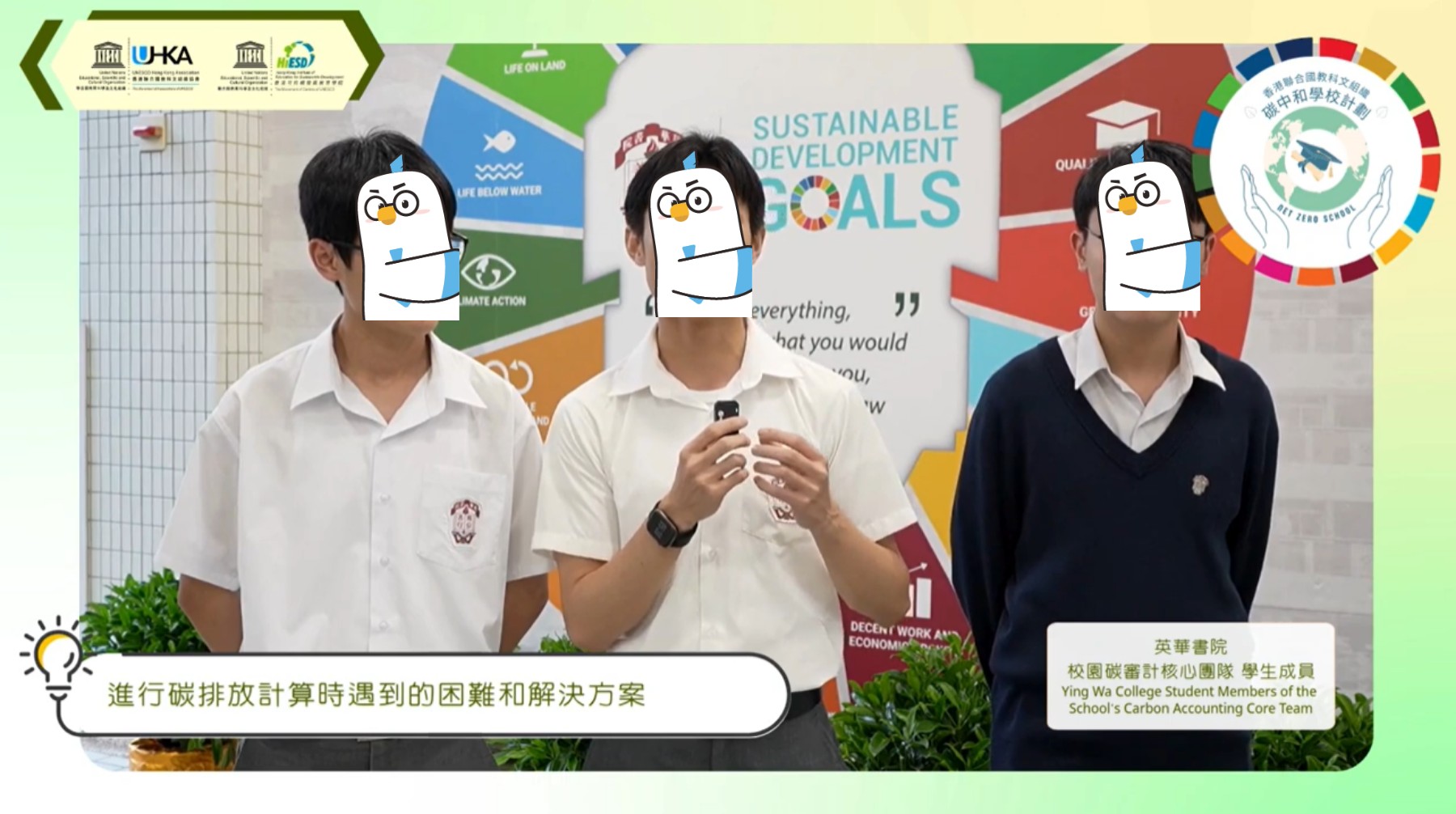 在官方文件的影响下,香港不少中小学都踊跃参加相关比赛以及活动,例如香港Band1名校英华书院就参与了香港2024-25学年碳中和学习计划,以联合国可持续发展目标(SDGs)为框架,引导学生探究全球议题相关议题的学习和实践,最终成为「碳中和示范校」。