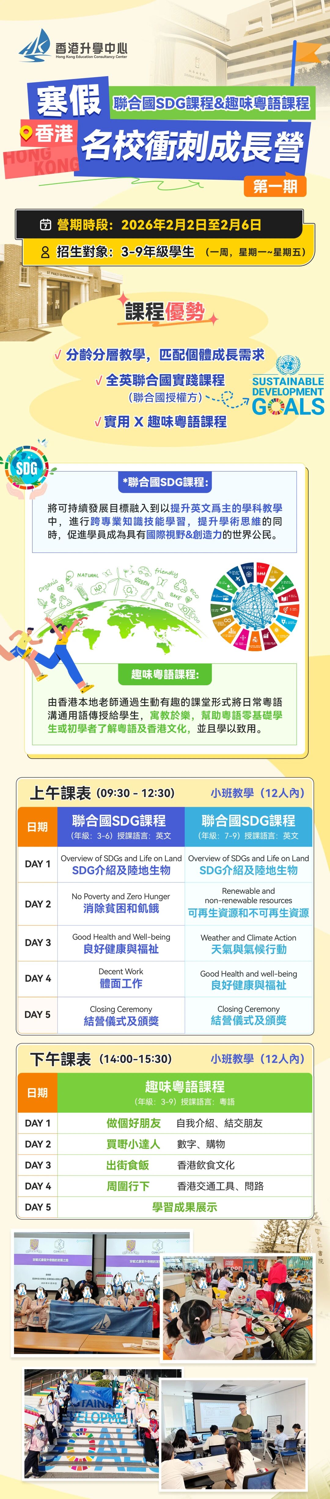 在这次的寒假冬令营第一期,作为拥有联合国实践课程授权的HKECC,不仅会用全英让孩子们体验名校同款联合国SDG课程,还会分龄分层教学,让3-9年级的孩子更好吸收知识。