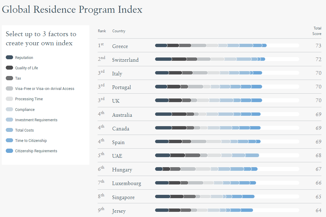Henley & Partners最新发布的2025年《全球居留计划指数》显示,希腊黄金签证以73分(满分100分)的综合评分位列全球第一,超越此前连续九年位居榜首的葡萄牙。