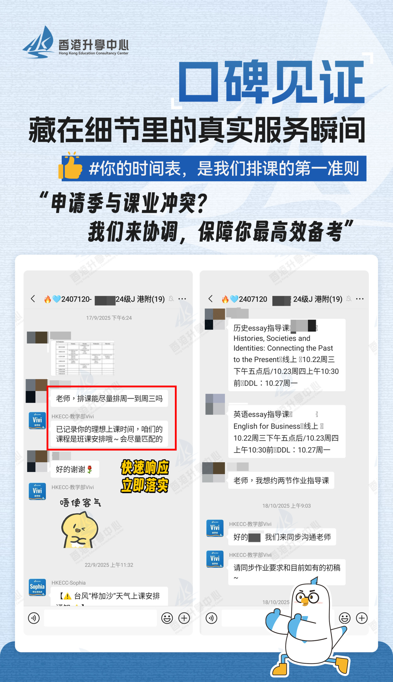 我们深知,异乡求学的征途,不仅需要学业与升学的硬核支撑,更离不开生活与心理的温柔滋养。为此,我们将暖心服务融入每一个细节,为你在香港搭建起遮风挡雨的温暖港湾: