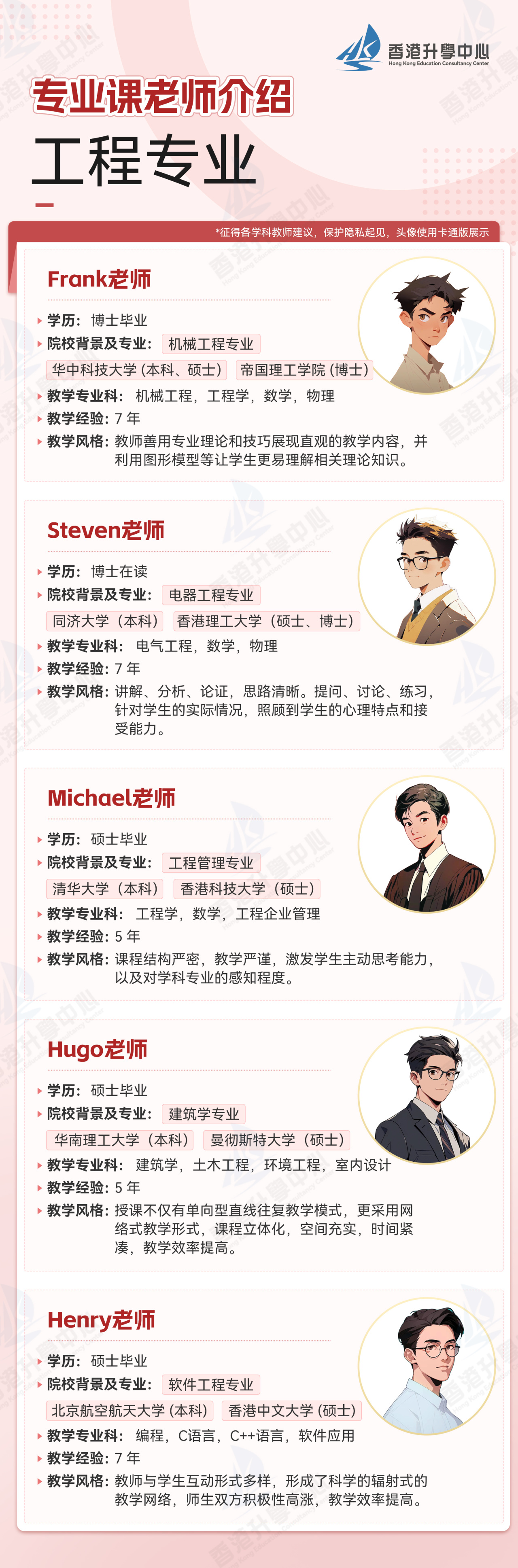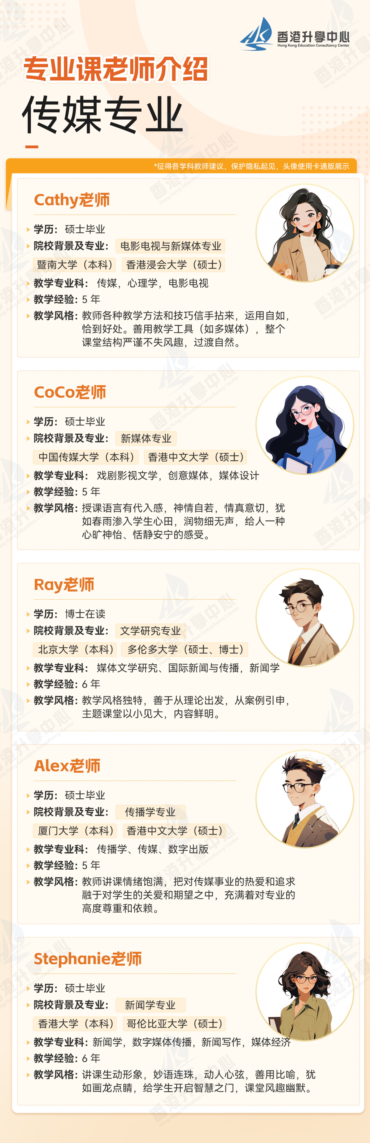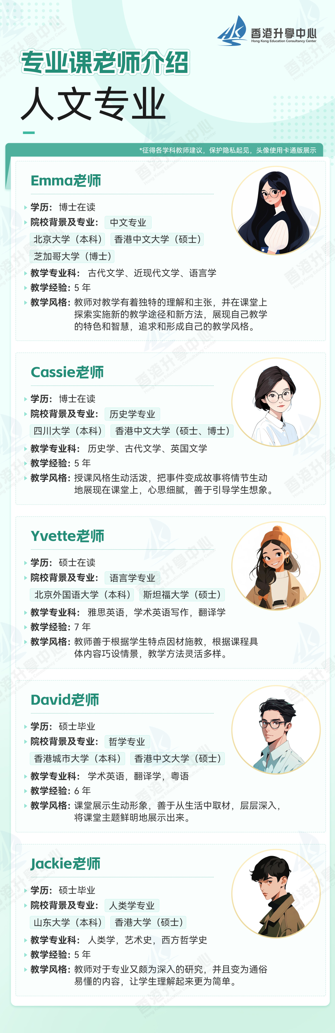 • 组建由香港高校毕业讲师、资深升学顾问构成的师资天团,所有老师均具备港校或海外名校深造背景,兼具丰富教学经验与港校学术认知,躬身授课。