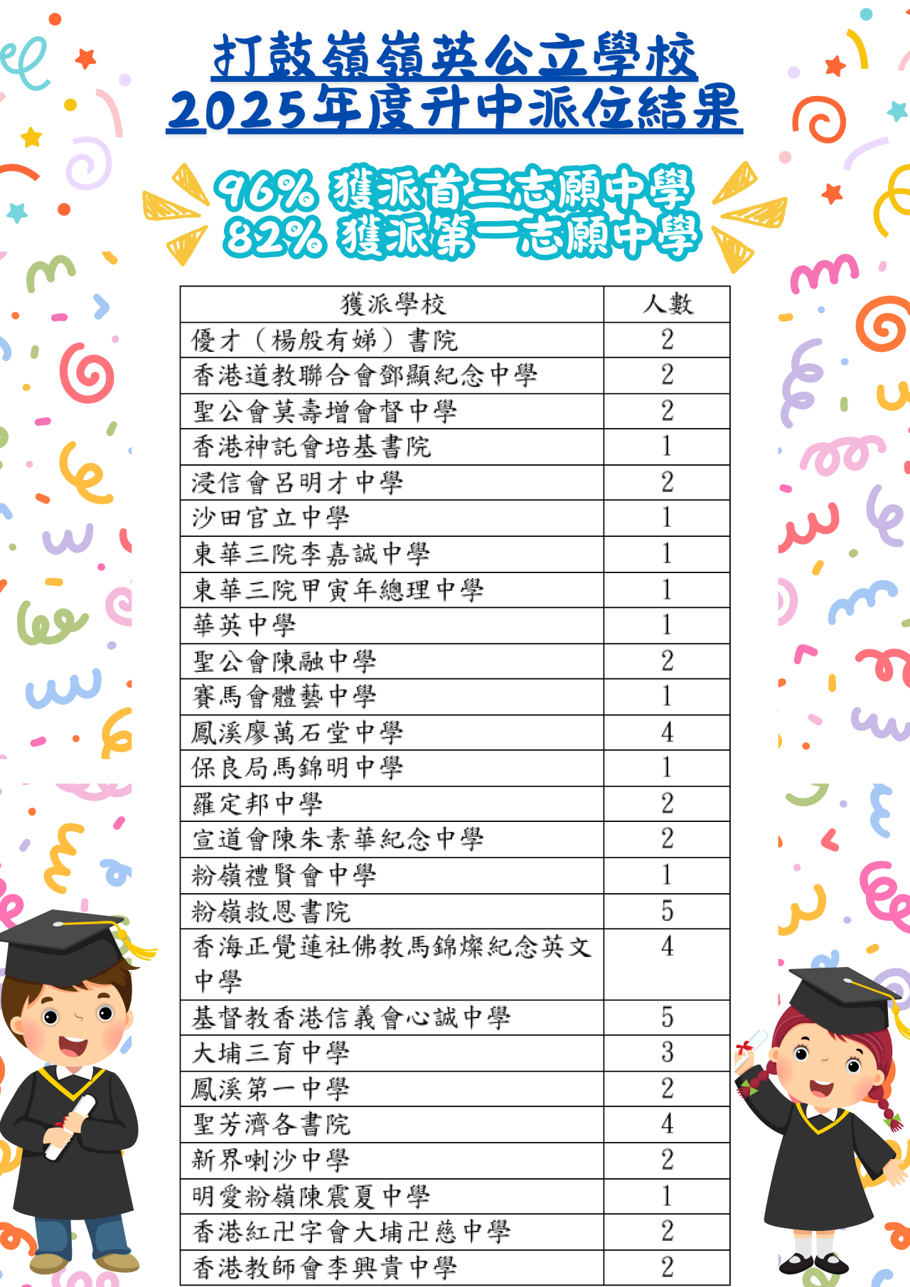 资助男女校,位于新界北区,被称为现实版绿野仙踪。坊间评价升中率还可以,适合新到港的家庭过渡。学校园林设计多次获全港冠军,2018年,学校成为“森林奇探索日营”基地,广受外界欢迎。2025年中一升学结果中,有学生入读香港Band1中学。