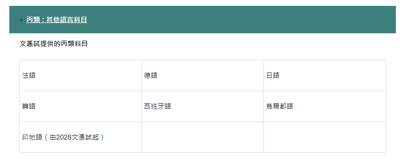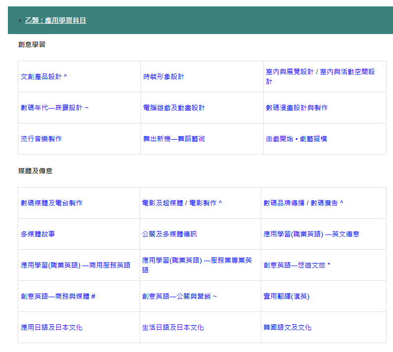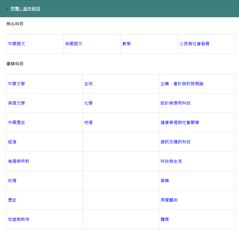香港选修科目一览,图源香港考评局