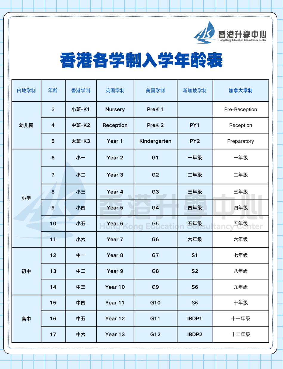 内地学制与香港本地学制年龄对照表