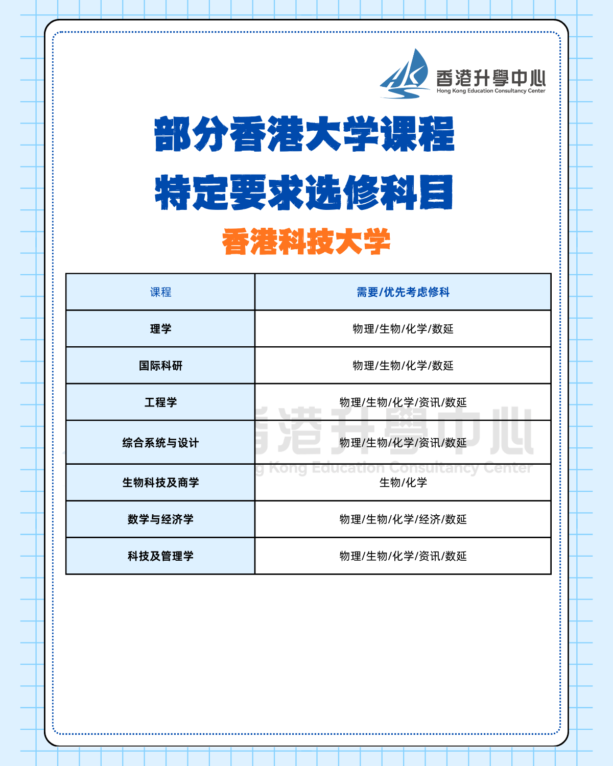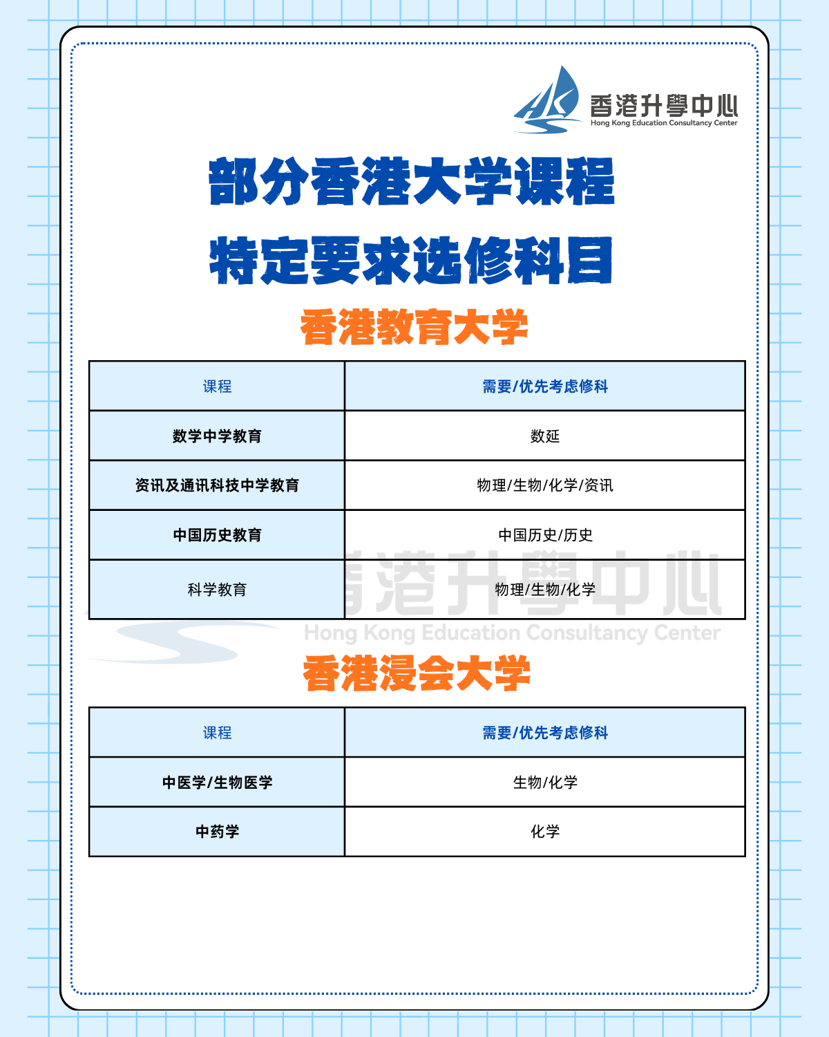 以HKECC香港升学中心此前探访的培侨中学为例,该校的选科组合便是根据香港八所大学的入学要求进行整理与归纳,力求帮助学生升读理想大学。过往案例中,不乏有学生仅凭兴趣选科,却忽略了目标大学专业的必修科目要求,出现无法被该专业录取的情况,这点需要特别注意。