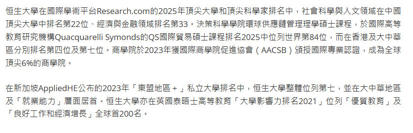 重磅消息!香港恒生大学26年秋季硕士新增五大专业!