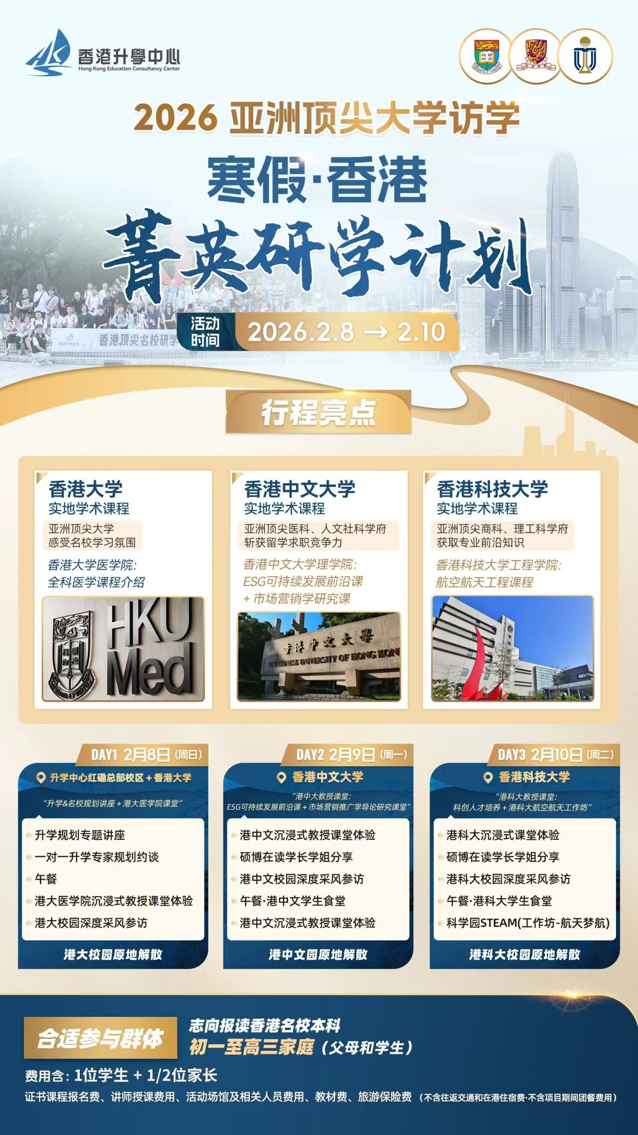 · 不是游学,是“预修”:在香港大学、中文大学、科技大学的真实课堂上,由教授亲自授课,提前感受名校学术节奏。