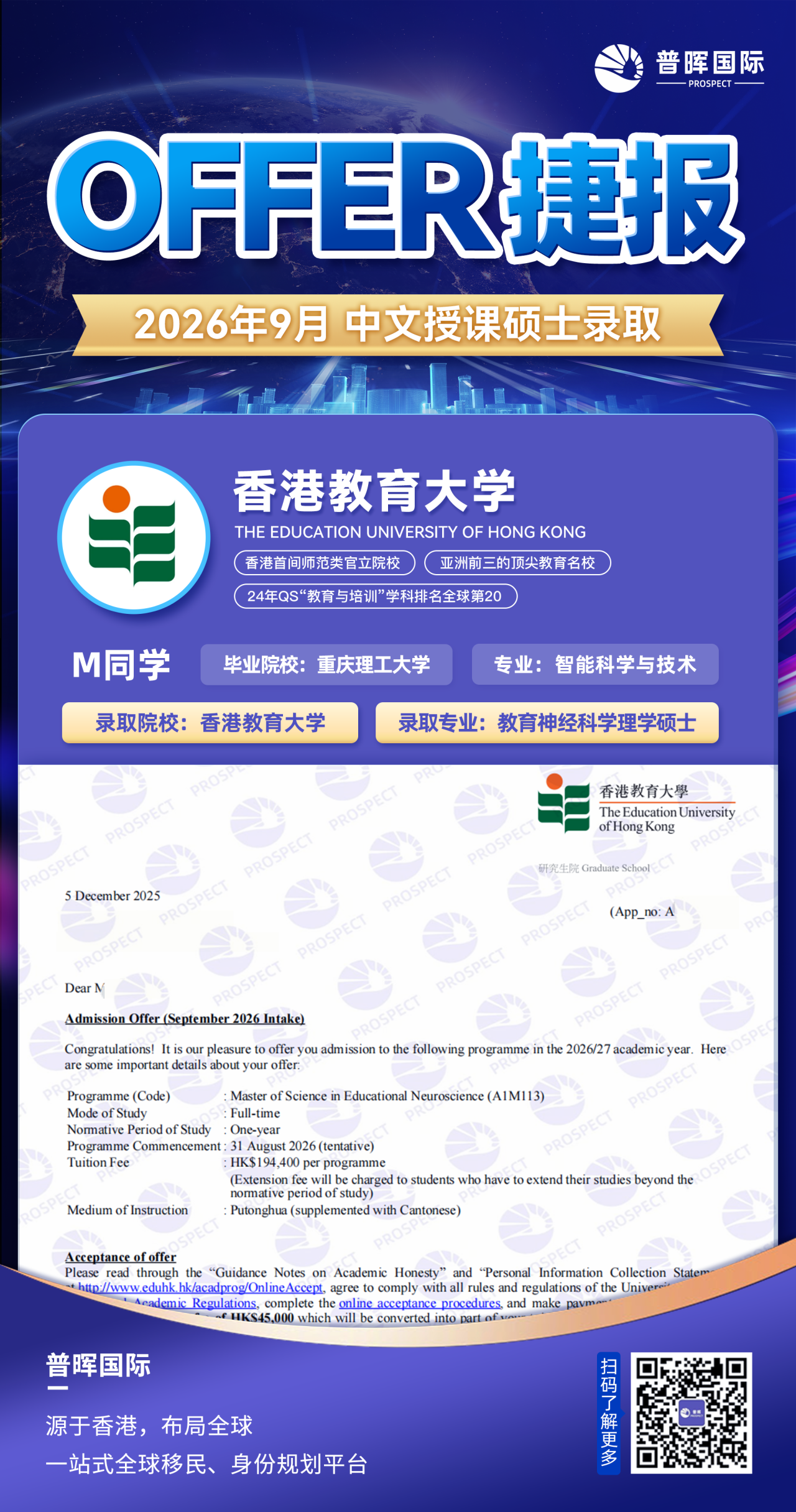 此外,教大的一年制硕士课程,时间成本低,毕业后可以申请IANG签证留港工作。对于有意规划“读书+就业+香港身份”路径的人来说,这是一条相对清晰的通道。