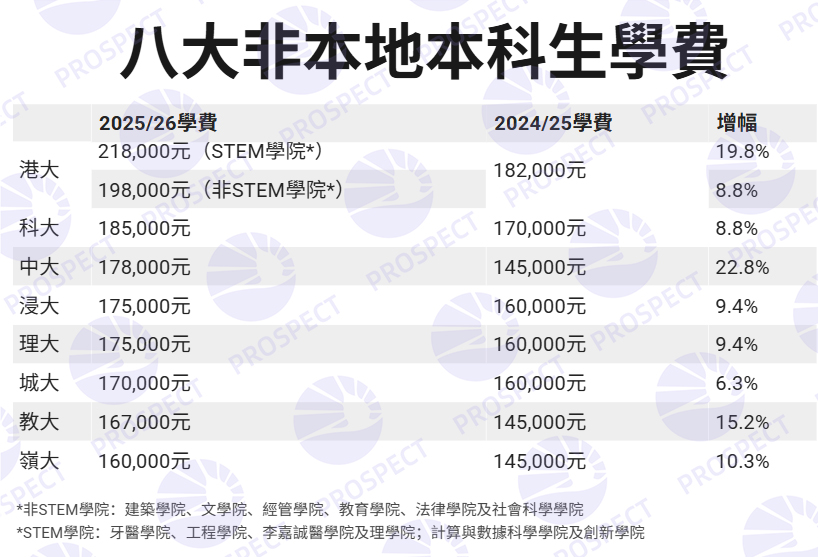 非本地生:需自付全额学费,通常是本地生的3.5倍以上。以港大STEM专业为例,2026/27学年学费高达24.9万港币/年。
