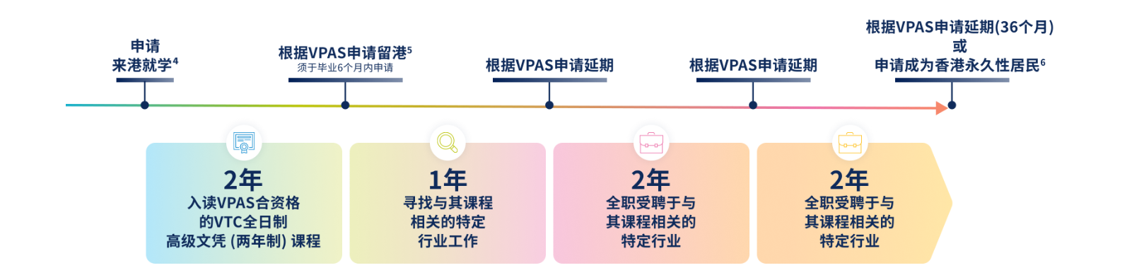 · 毕业生在课程结束后的第7个月至第12个月内,仍可根据VPAS申请回港就业。