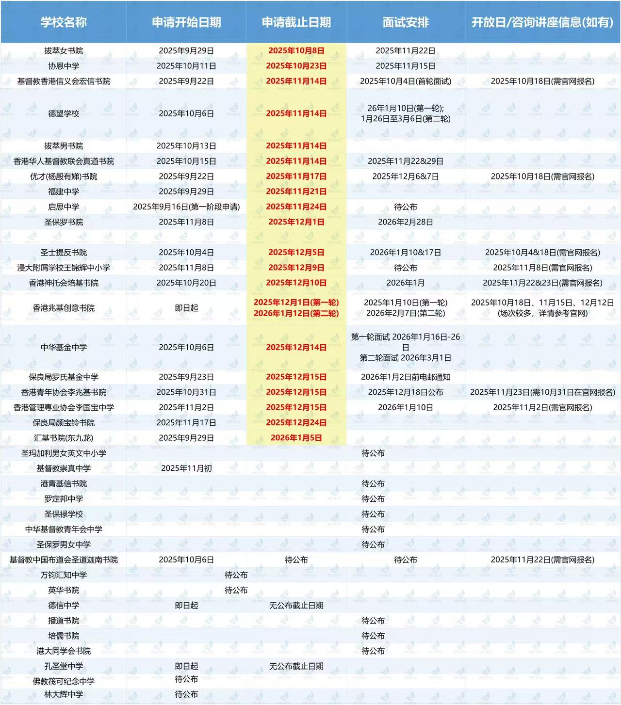 我们整理了以下热门直资中学的最新申请信息,请家长务必注意:多数直资名校的申请截止日期集中在2025年10月至12月间。